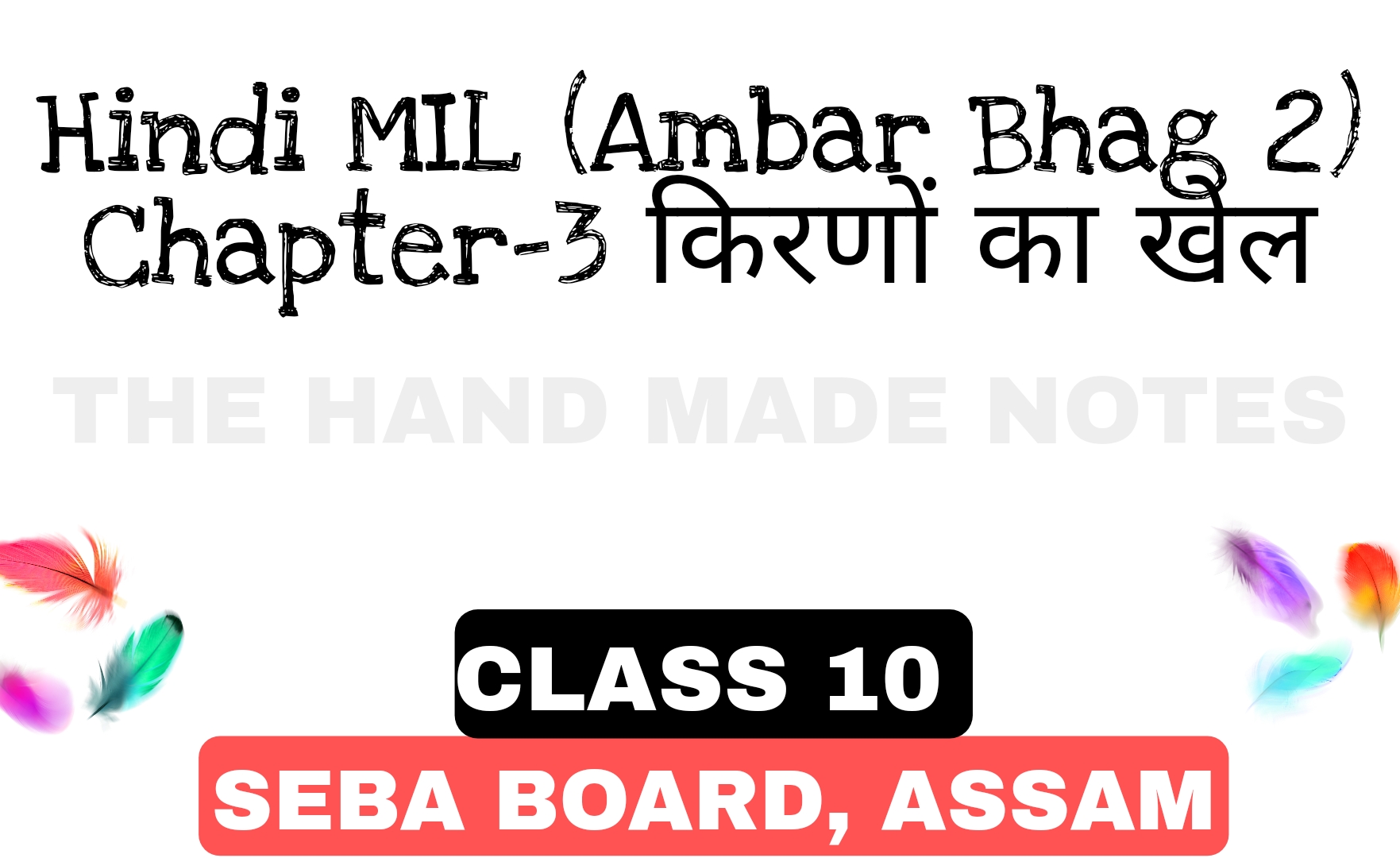 Seba Board Class 10 Hindi (Ambar Bhag 2) Chapter-3 किरणों का खेल Solutions